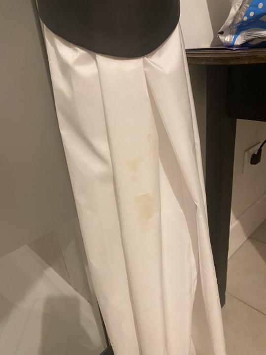 Der Duschvorhang mit Flecken.