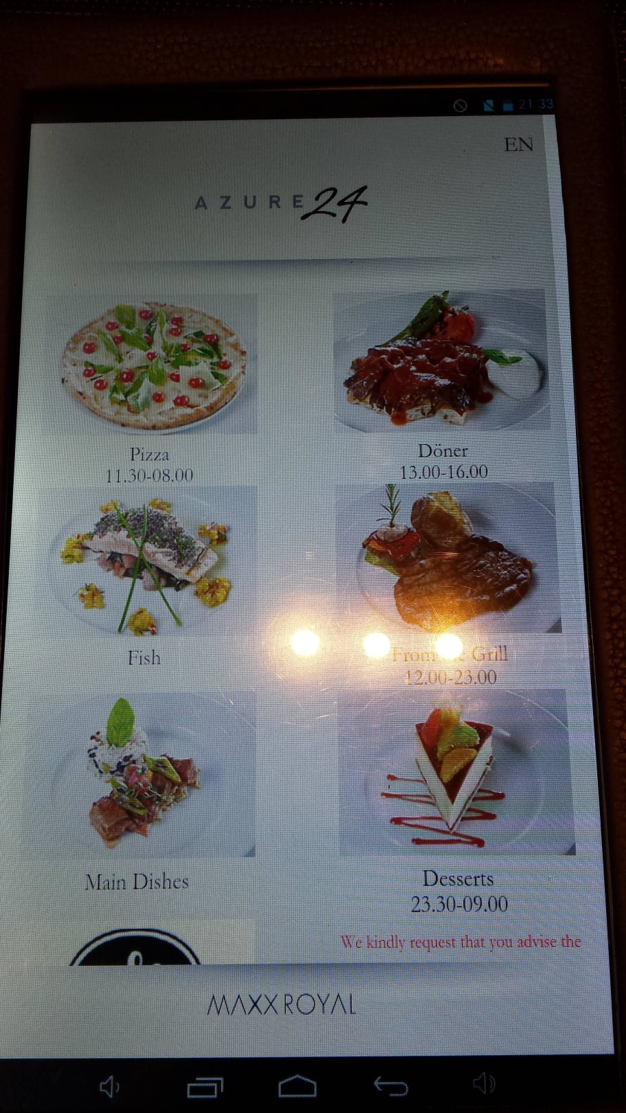 Speisekarte im "Azure24"