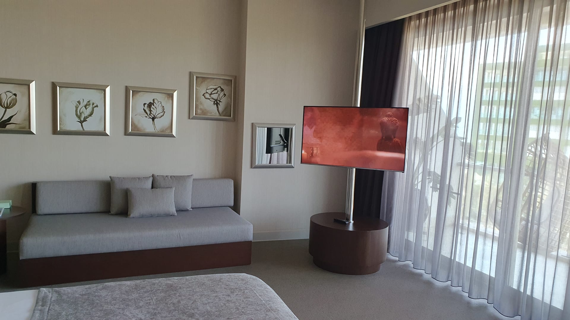 sehr gut der neu angebrachte große Fernseher mit 14 deutschen Programmen
