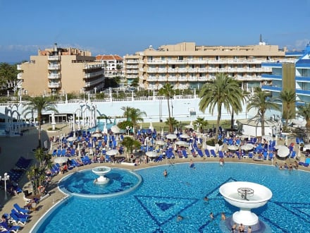Ausblick auf die Hotel-Anlage von Mare Nostrum Hotels, auf der rechten seite befindet sich Hotel Julio Cesar links daneben Hotel Cleopatra Palace und in Hintergrund Hotel Marco Antonio Palace sowie links Hotel Sir Anthony.