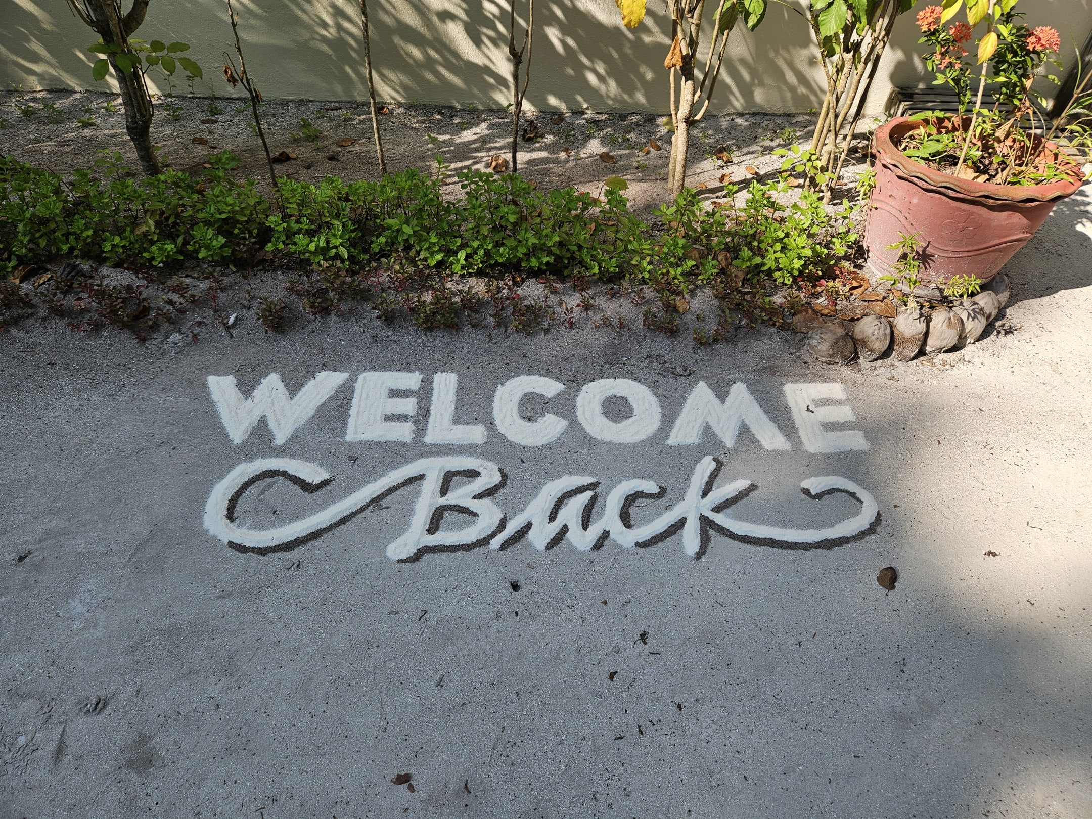 Willkommengruß vor der Villa