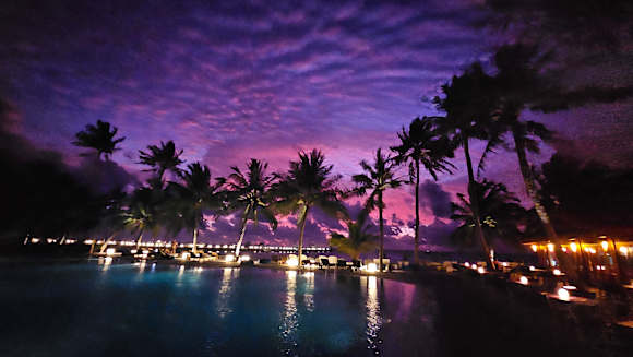 Sonnenuntergang beim Hauptpool / Barbereich
