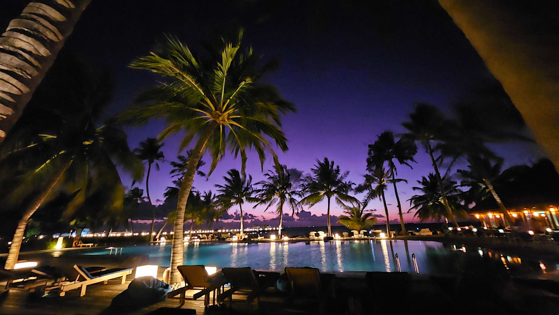 Sonnenuntergang beim Hauptpool / Barbereich