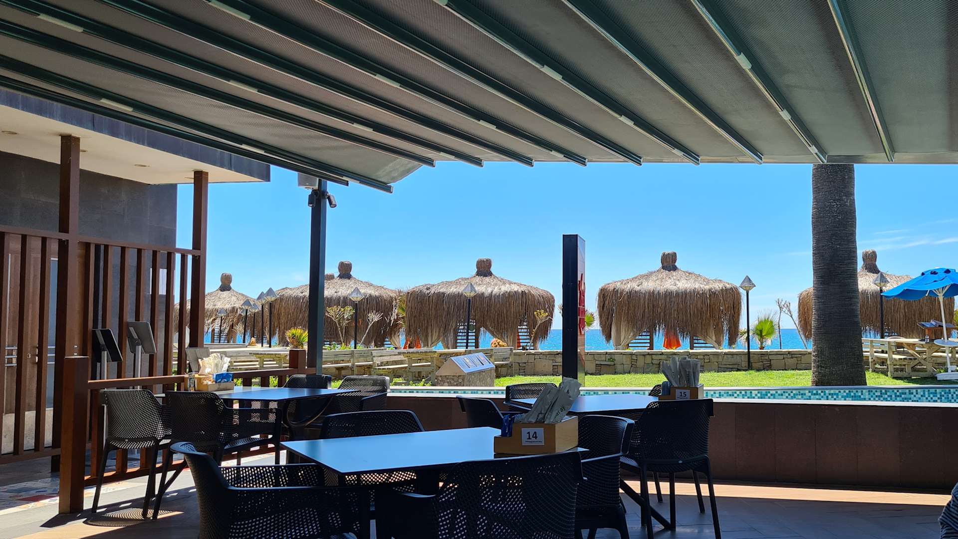 Blick aus dem Mega Food auf die Cabanas