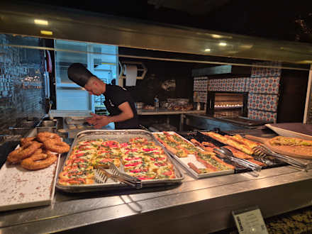 Der Pizzaofen, bei dem immer frisch gebacken wird.