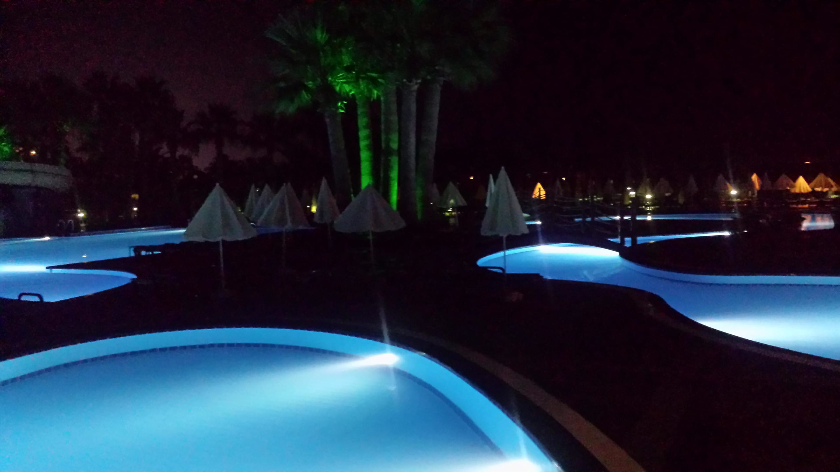 Abendbeleuchtung am Pool