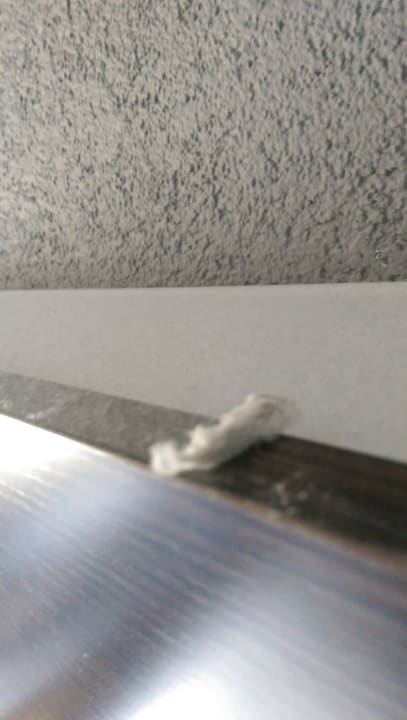 Holzverkleidung über Bett mit Staubflocken