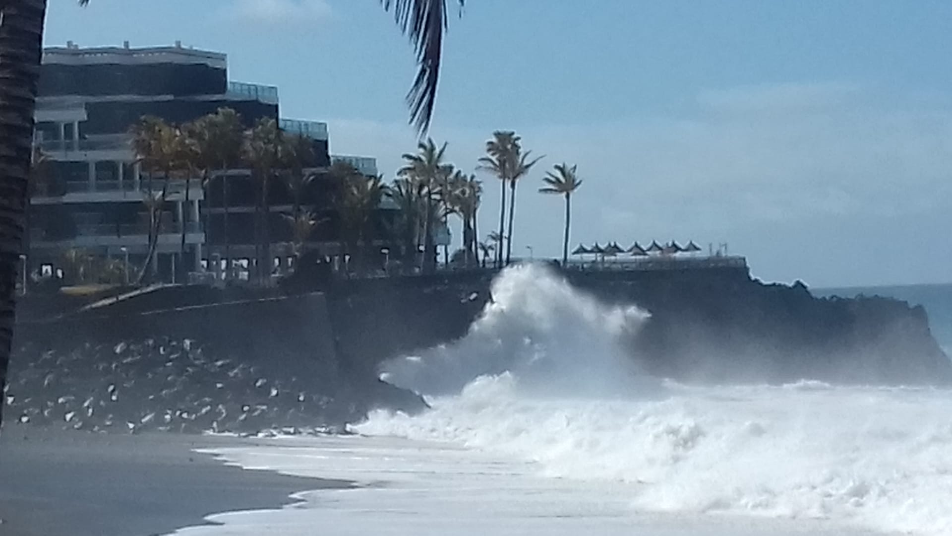 Spezielle Wetterlage. Meterhohe Wellen am Strand.