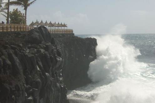 Klippen und Pool bei schlechtem Wetter
