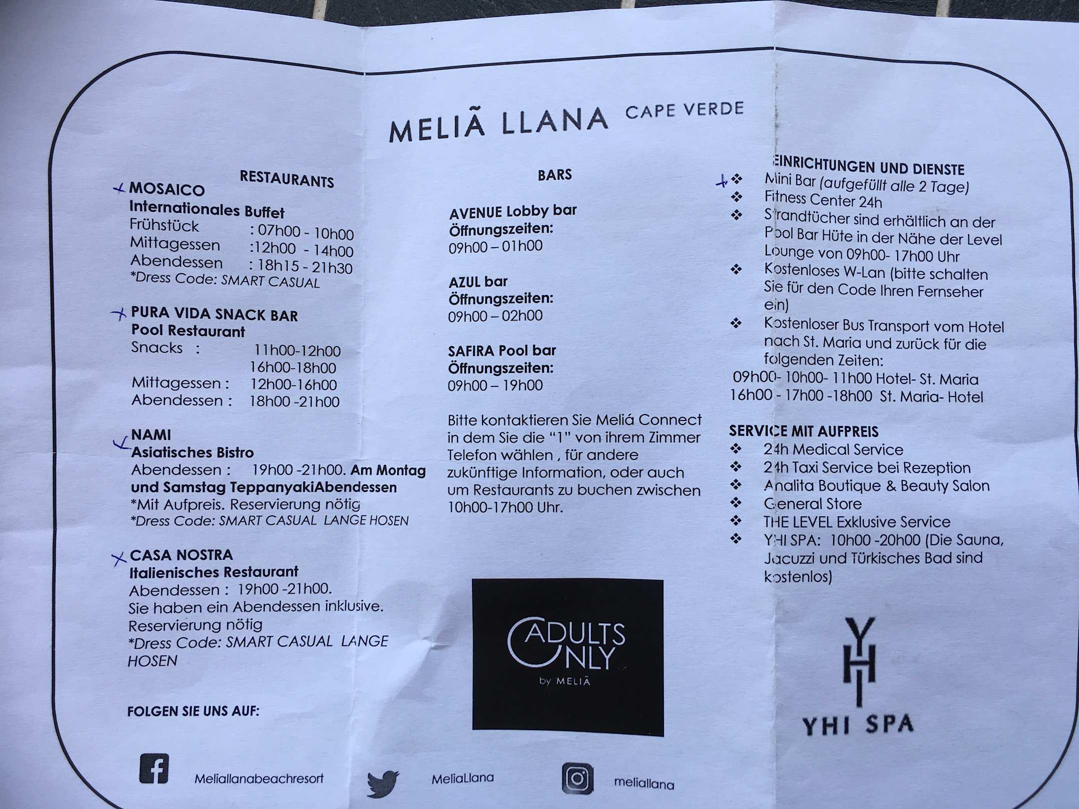 Übersicht der Hotelleistungen