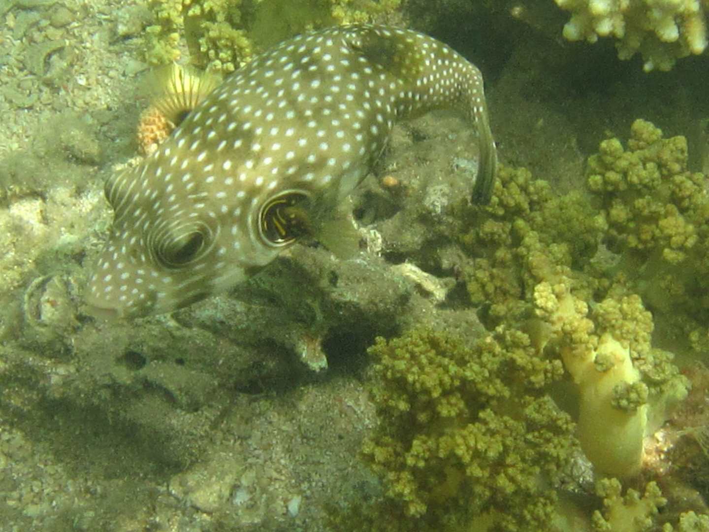Ein Kugelfisch am Hotelriff