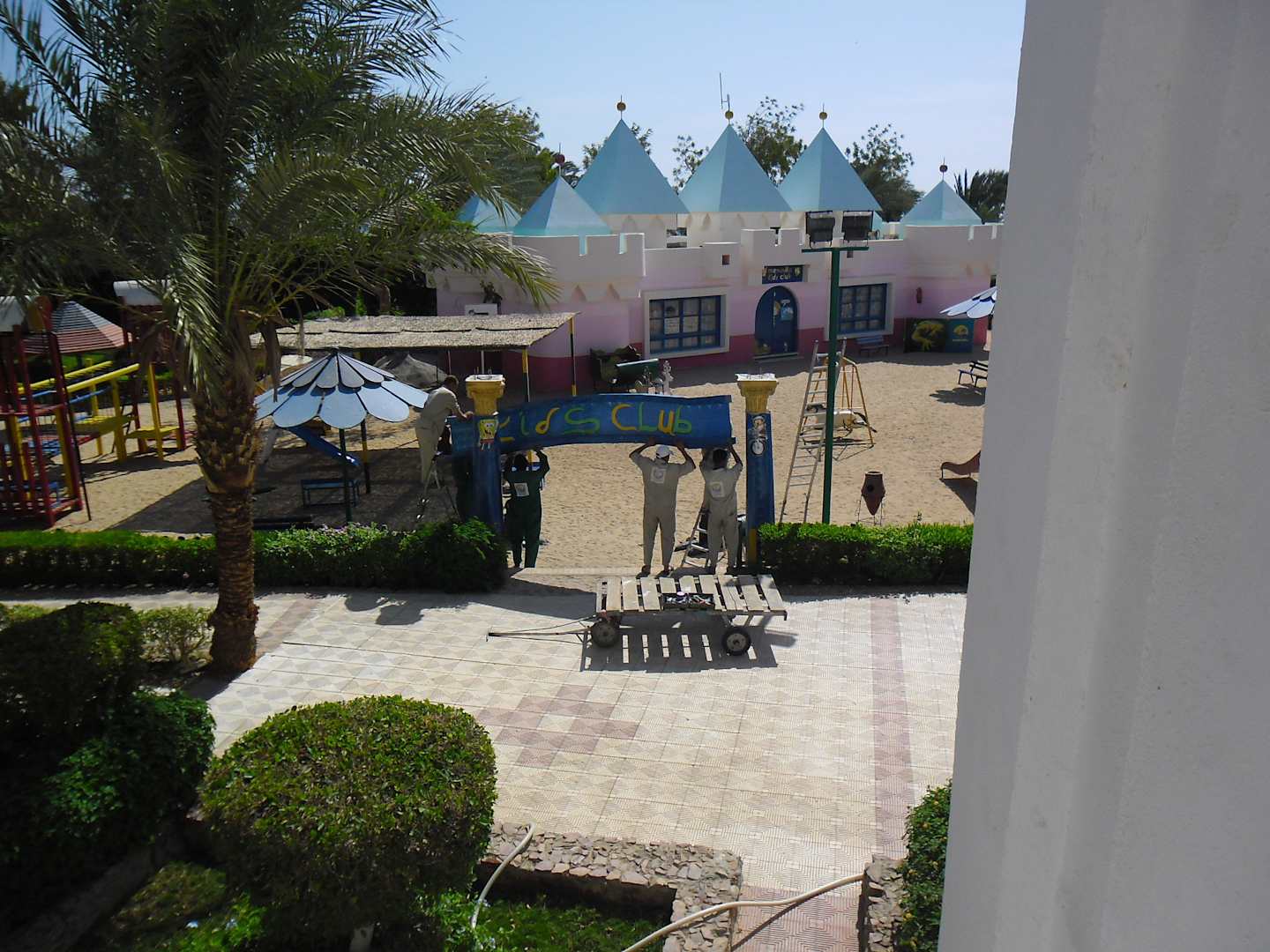 Eingangsschild wird angebracht am Kidsclub Menaville Safaga