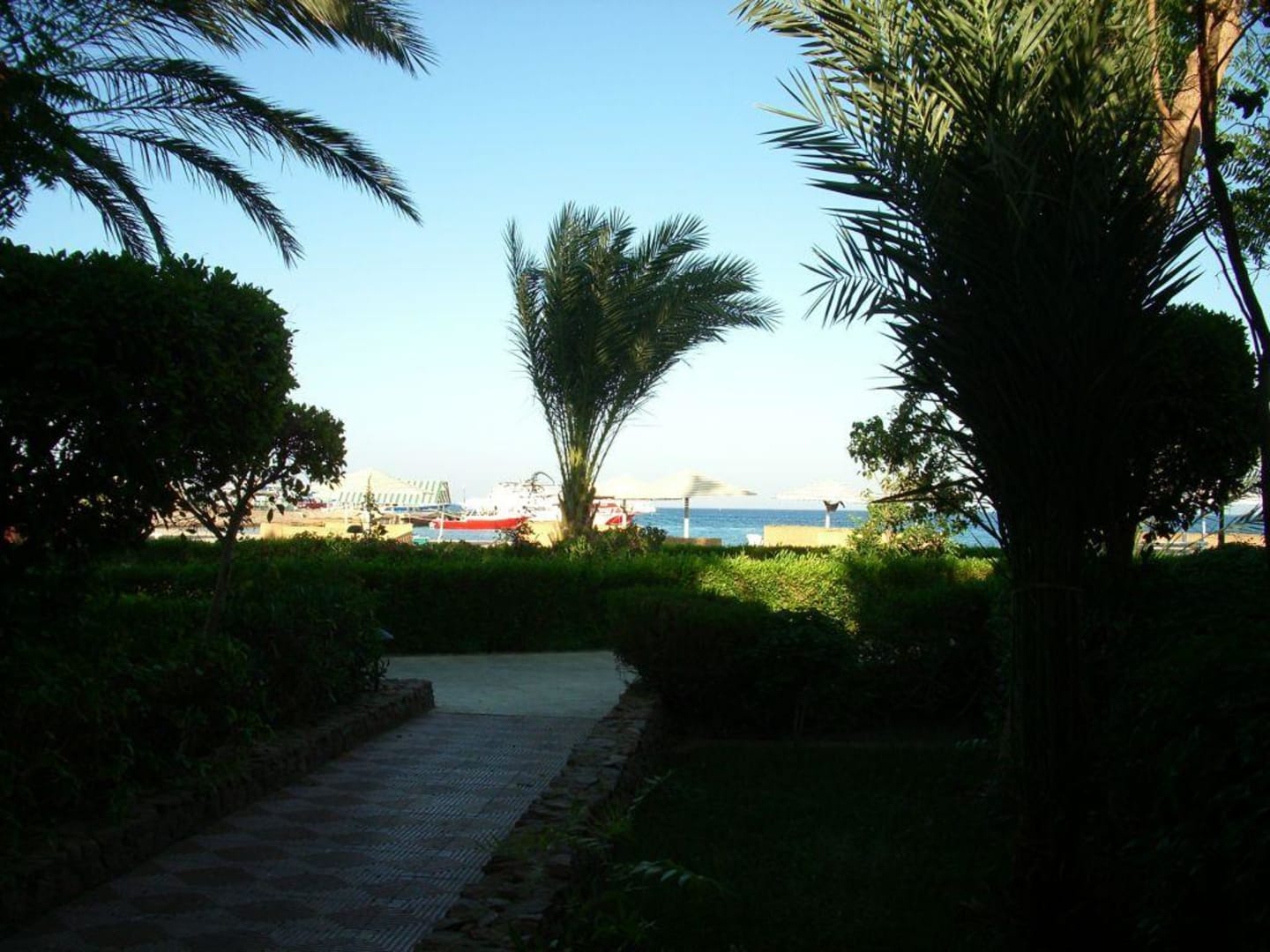 Blick von der Terasse des Zimmers 111 in Richtung Strand