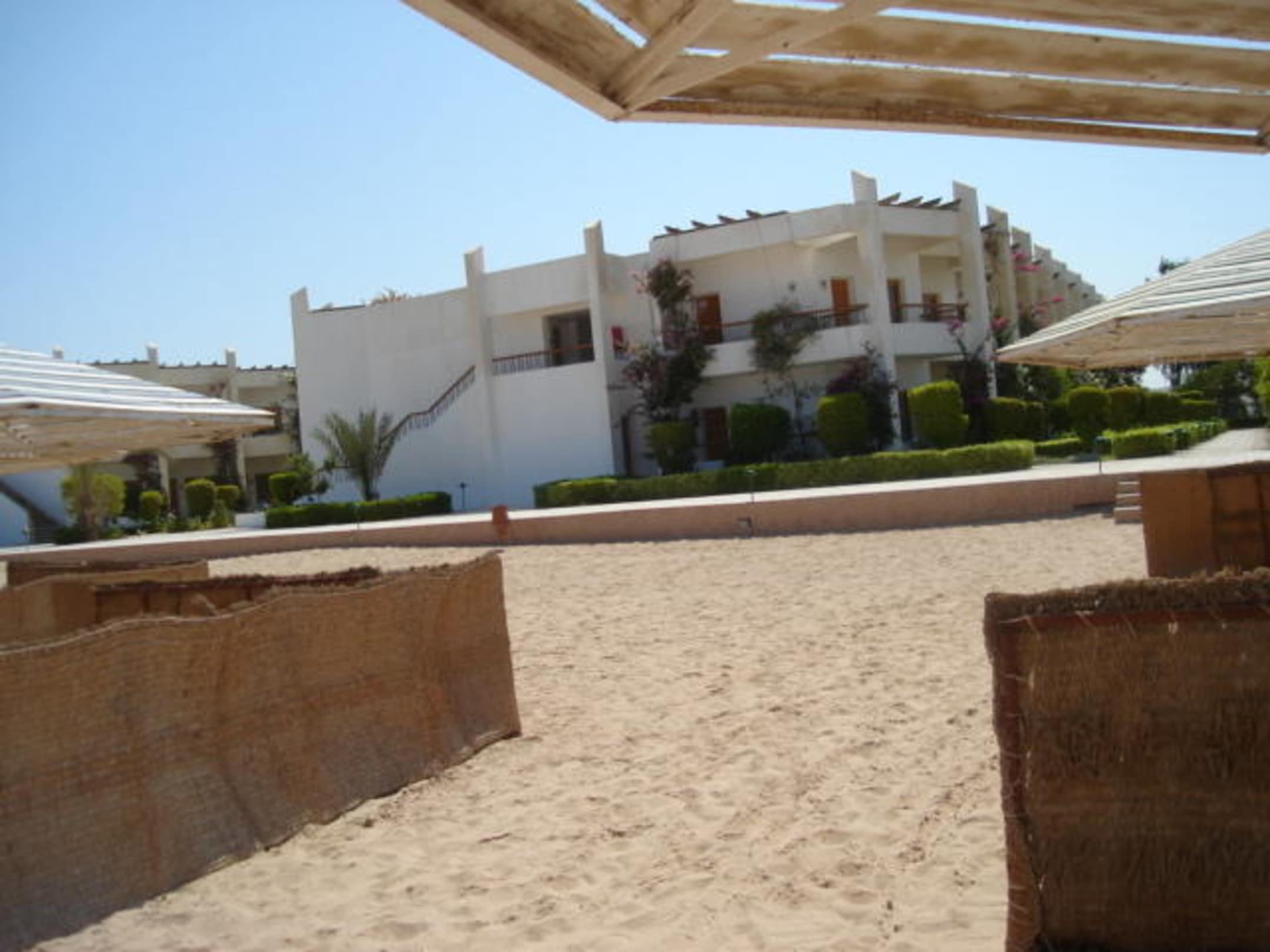 Plaża i widok na budynek w którym sa pokoje