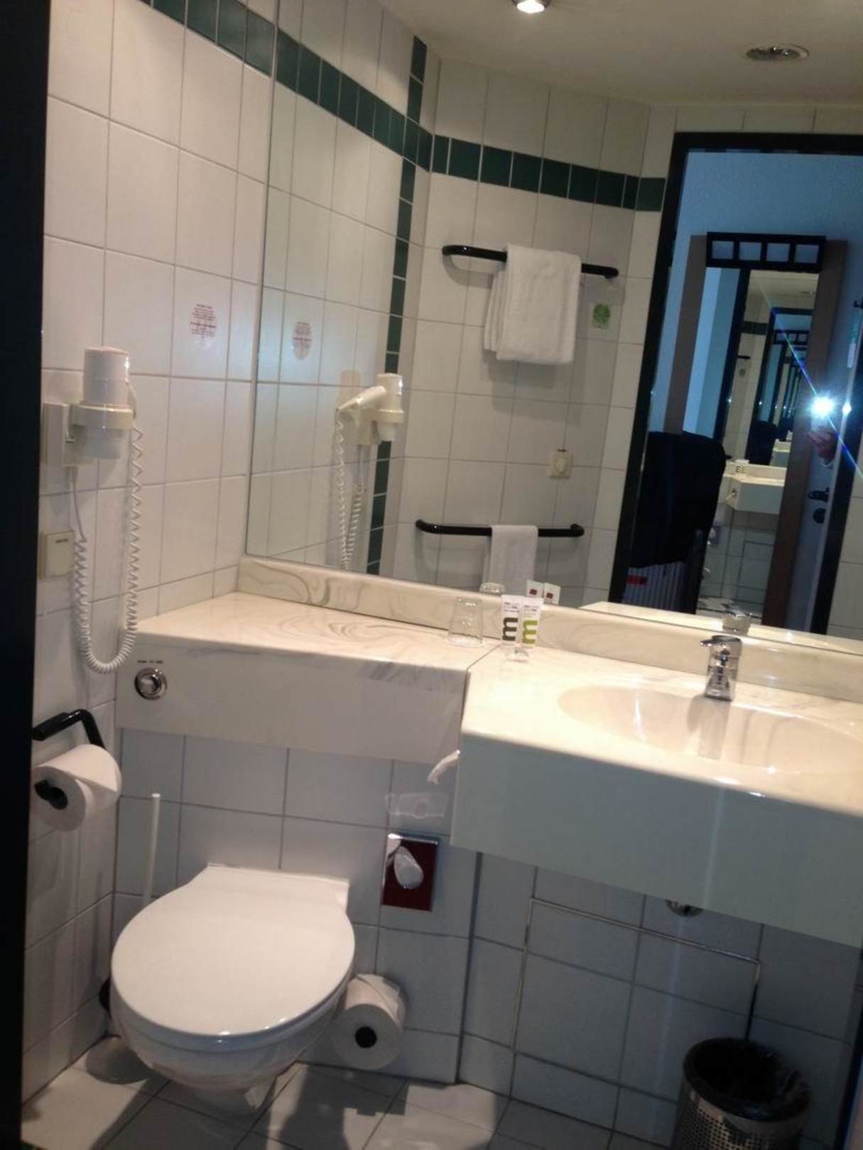 Intelligent geschnittenes Bad - nicht groß, genug Ablagefläche.