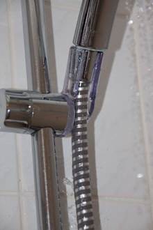 Defekter Duschschlauchhier floss 50% des Wassers VOR dem Duschkopf in die Wanne ...