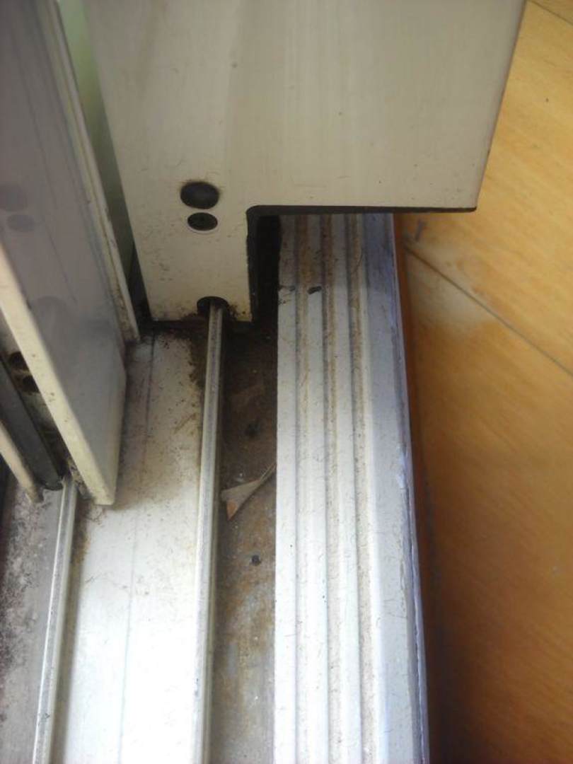 Dreck in allen Ritzen - wohin man schaut. Hier die Führung der Schiebetür vom grossen Fenster