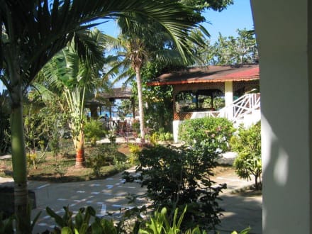 Blick auf Restaurant und Bar. Direkt dahinter befindet sich der Strand.