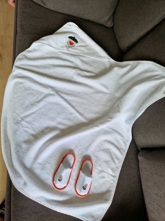 Ein Badetuch und Hausschuhe für unser Baby