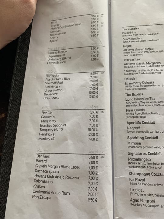 Getränkekarte - die mit dem Kreis sind bei AI mit drin