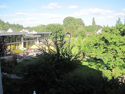 Blick vom Balkon auf Wellnessbereich