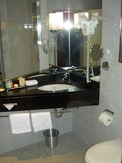Blick ins Badezimmer mit Marmor und Granit des K+K Maria Theresia Hotels in Wien.