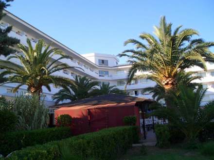 Blick vom Garten auf das Hotel