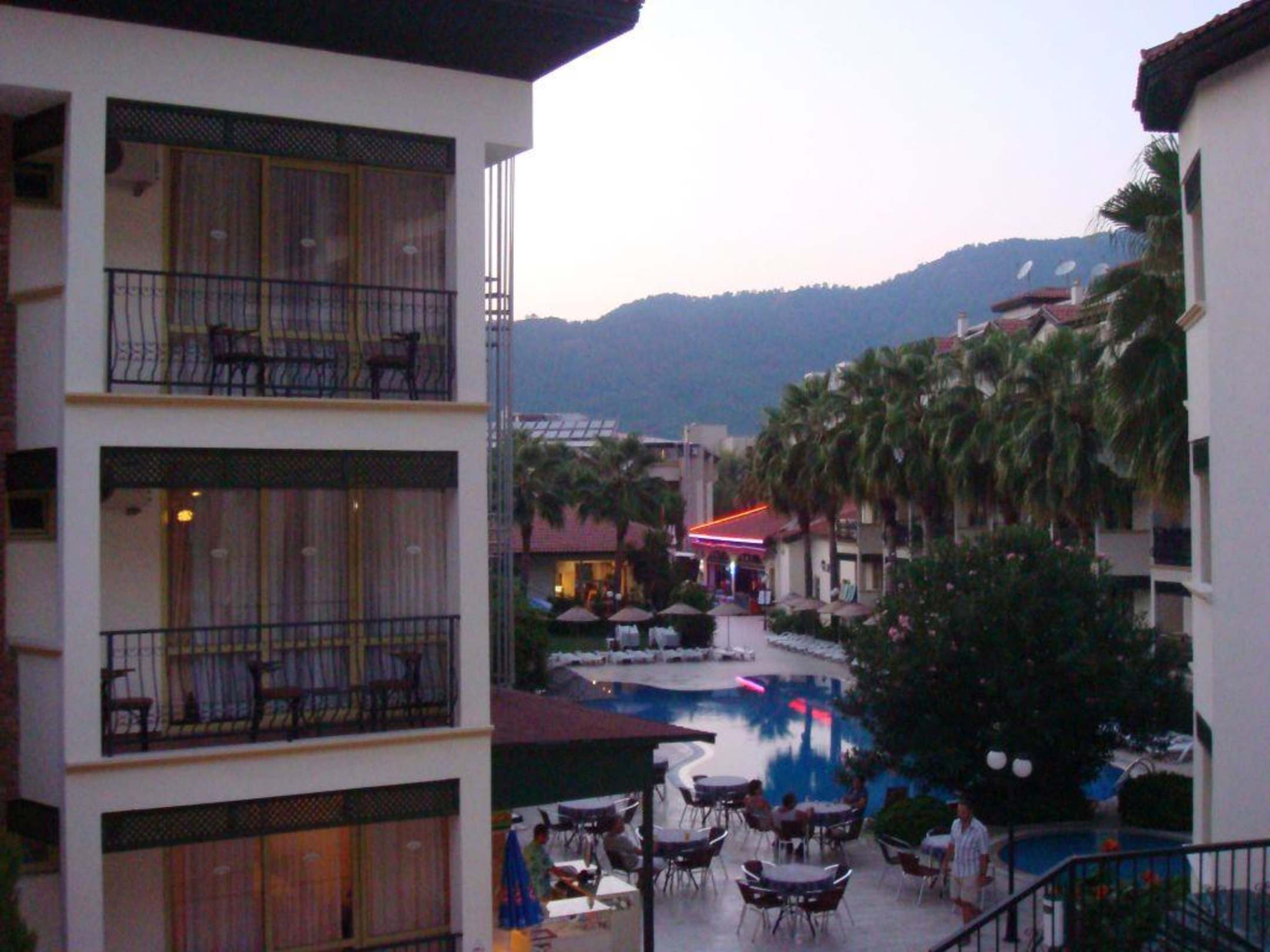 Hotel Mirage World, Iclemer: Man sieht den unteren Pool und im Hintergrund die Rezeption und Ausgang aus der Anlage.