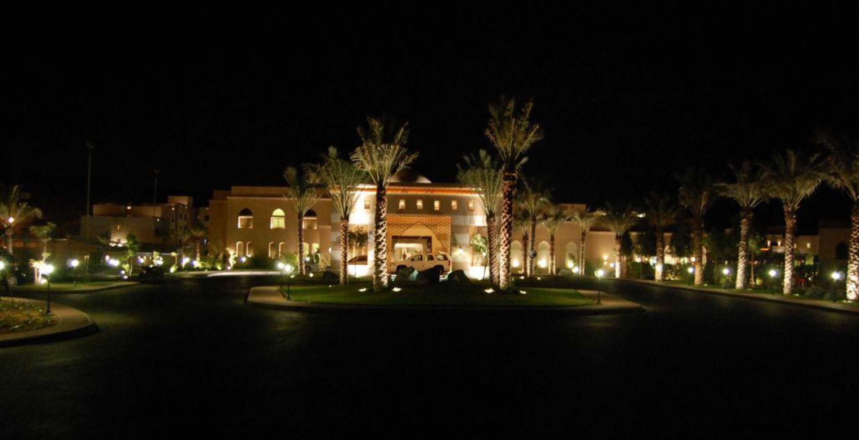 Blick auf den Eingang des Iberotel Miramar Al Aqah Beach Resort, ca. 21 Uhr Ortszeit