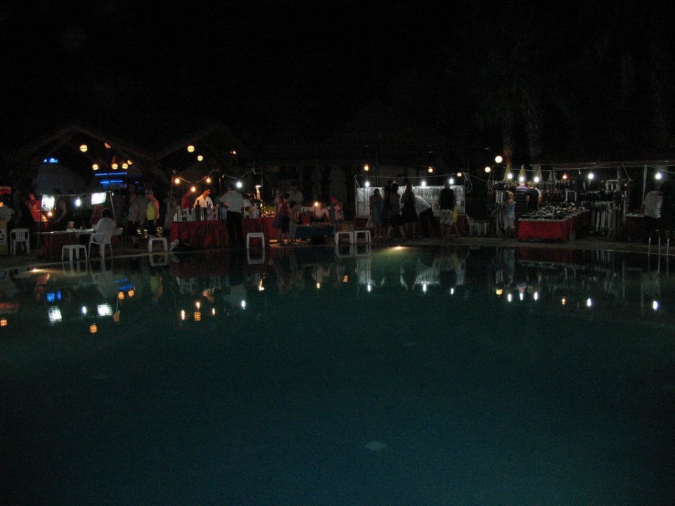 Bazar am Pool in der Nacht