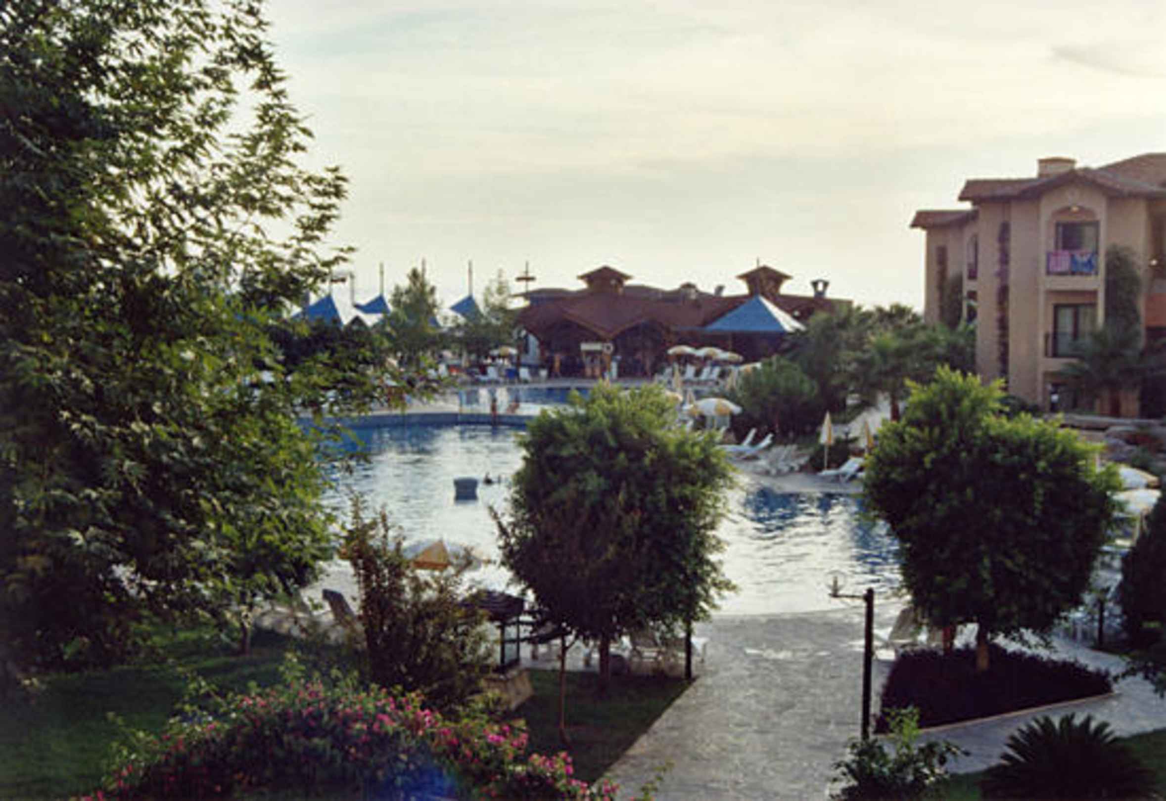 Blick vom Hauptgebäude auf den Poolbereich.Türkei - Side - Miramare Queen 2002 - Blick vom Hauptgebäude auf den Poolbereich.