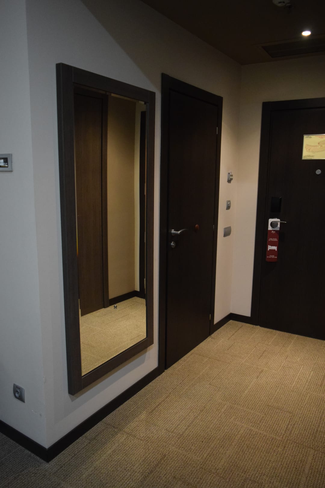Spiegel im Eingangsbereich, daneben die Tür zum Badezimmer...