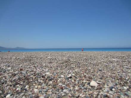 Żwirowa plaża na przeciw hotelu