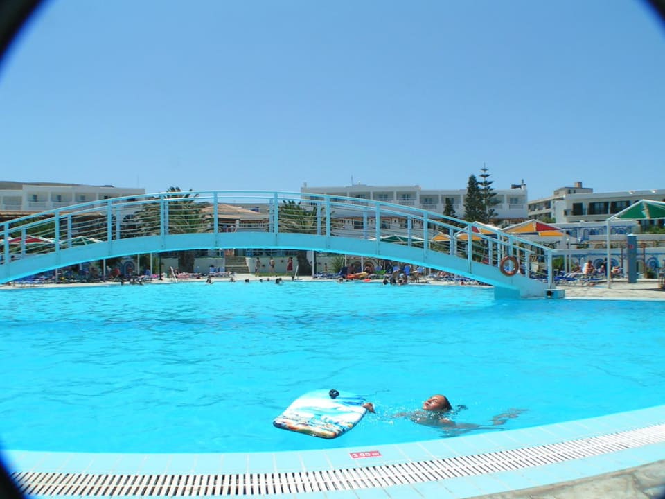 Blick zum Haupthaus des Hotels vom Pool