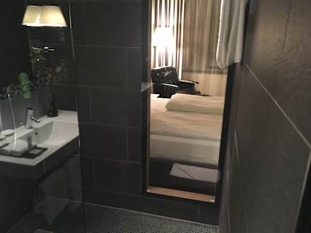 Bad mit durchblick zum Zimmer (über die Dusche)