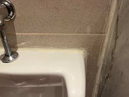 Fugen am Waschbecken , alt, verdreckt