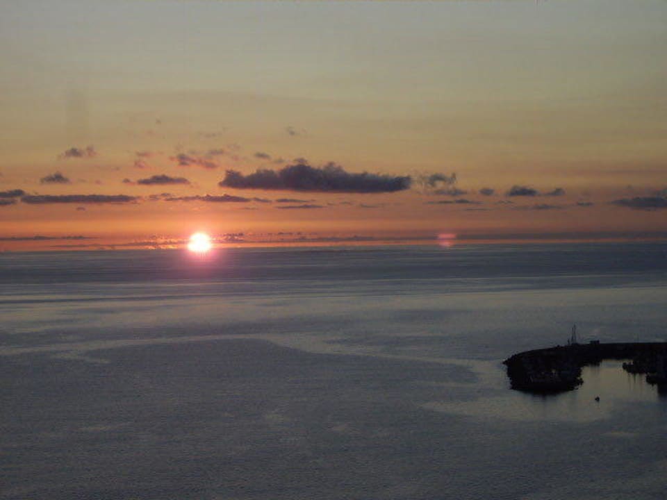 Traumhafter Blick vom Zimmerbalkon auf Puerto de Mogán bei Sonnenuntergang.