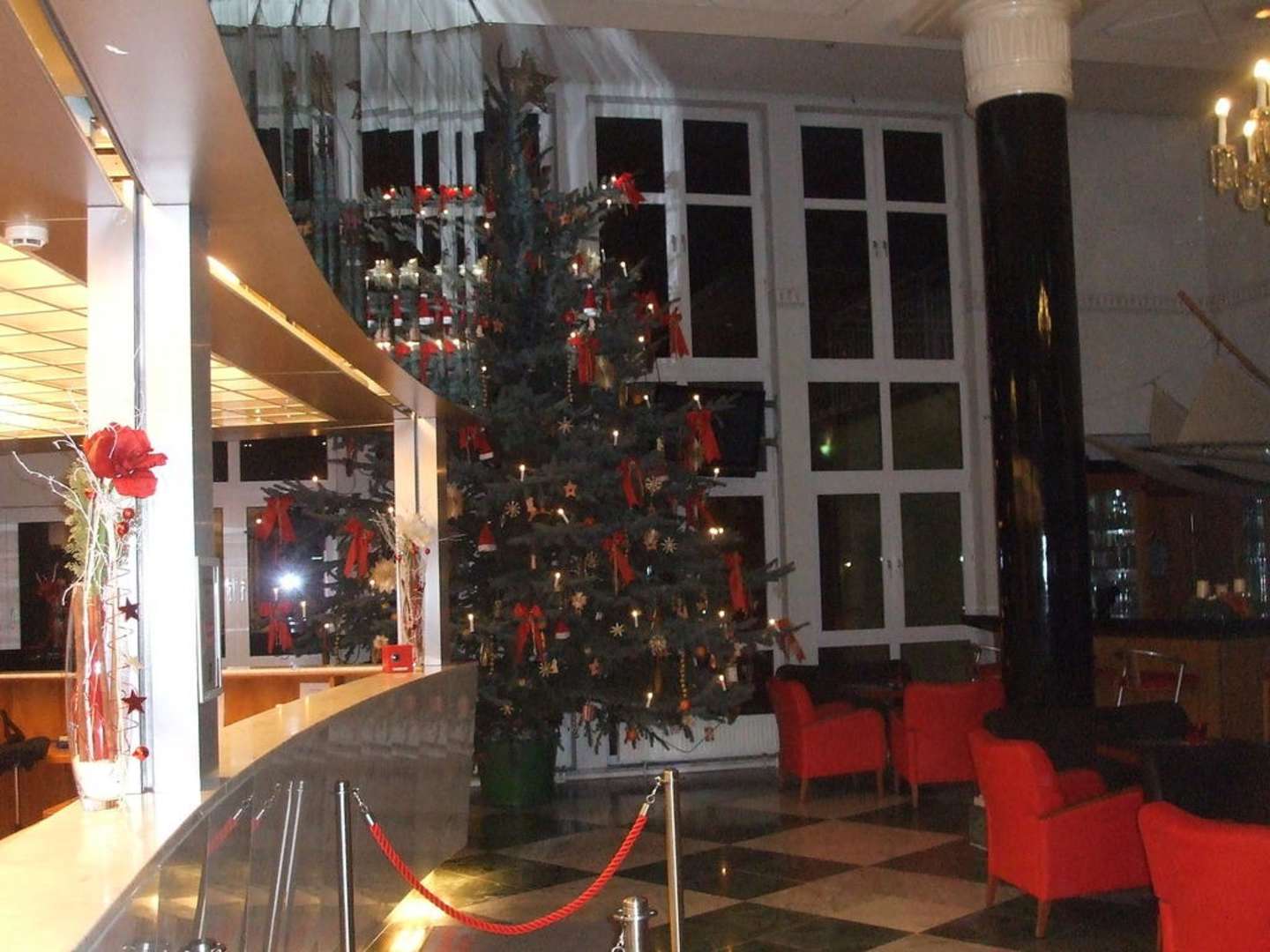 Blick in die Lobby vom Hotel Mondi BellevueDiese Aufnahme vom frisch geschmückten Weihnachtsbaum in der Lobby vom Hotel Mondi Bellevue habe ich am späten Abend des 10. Dezembers 2010 gemacht.