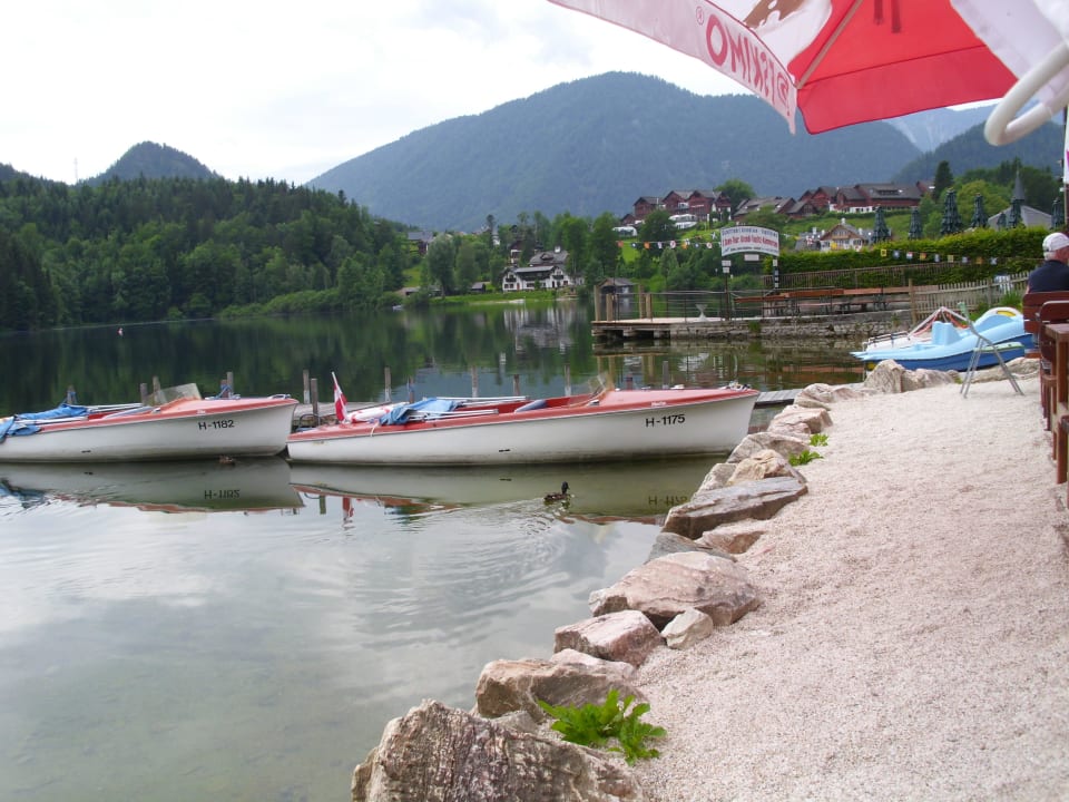 Vom "Hansl" Blick auf die Anlage oben am Berg MONDI Resort am Grundlsee