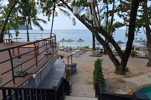 Abgang zum Restaurant und Beach