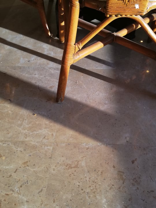 Speisesaal alte dreckige Rattanmöbel unbequem und alles Dreckig Boden Usw