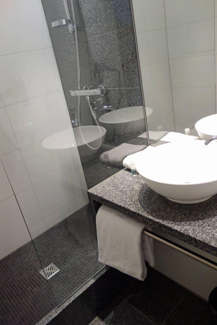 Waschbecken und Dusche