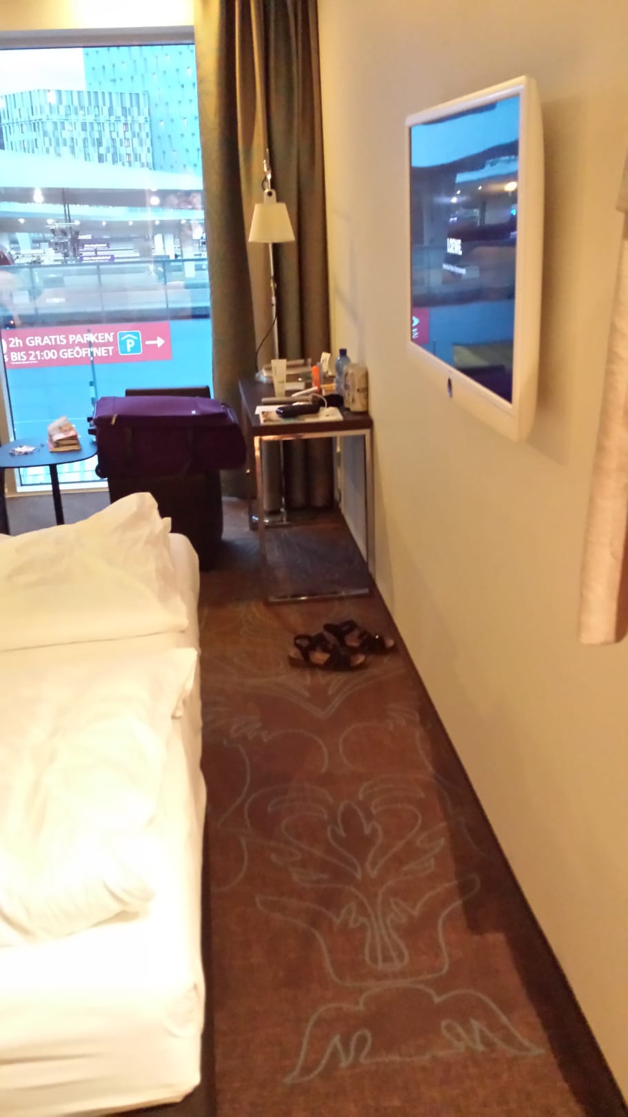 Flachbildfernseher an der Wand, Aussicht 3. Etage