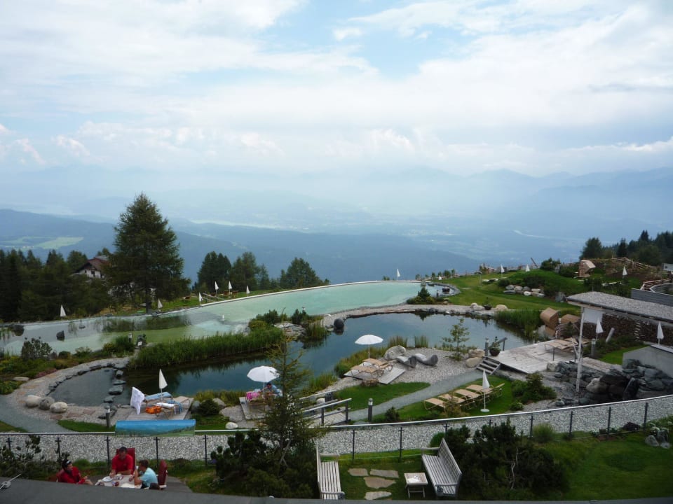 Ausblick vom Zimmer auf den Bergpool