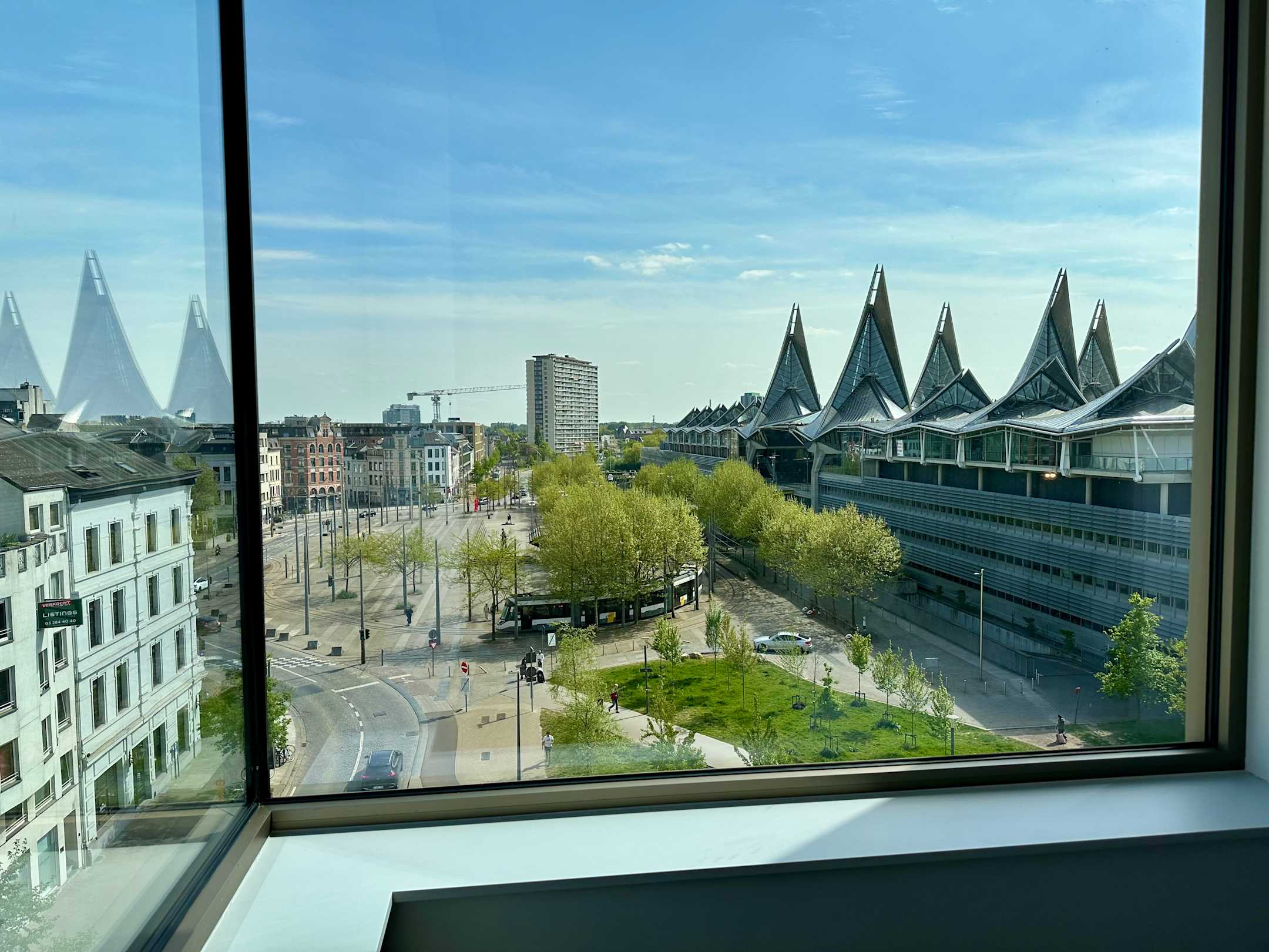 Blick aus unserem Eckzimmer im 5. Stock auf den Justizpalast.