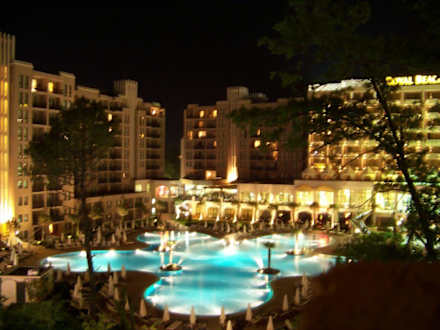Abendaussicht wenn man kein Zimmer mit Meerblick hat, also auf der Hoteleingangsseite untegebracht ist in Richtung Royal Barcelo