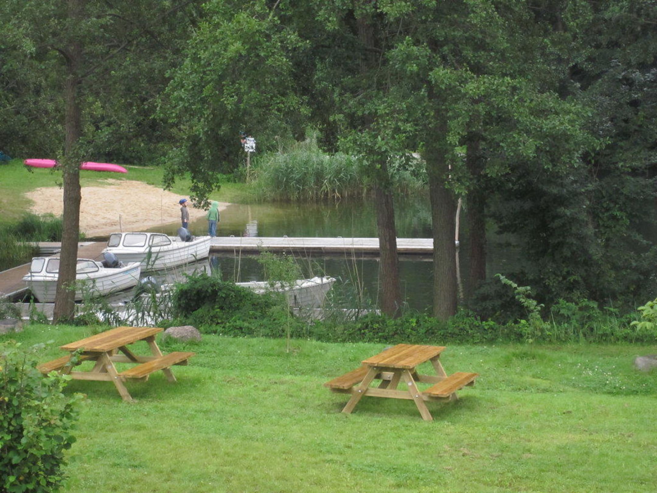 Blick auf den Kanurastplatz vom Balkon aus.