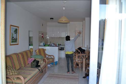 Wohnzimmer mit Küche und Schlafcouch