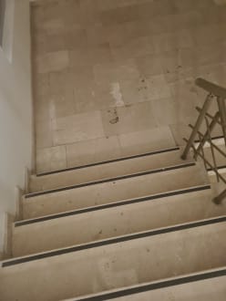 Flecken sind überall im Flur und Treppenhaus vorhanden.