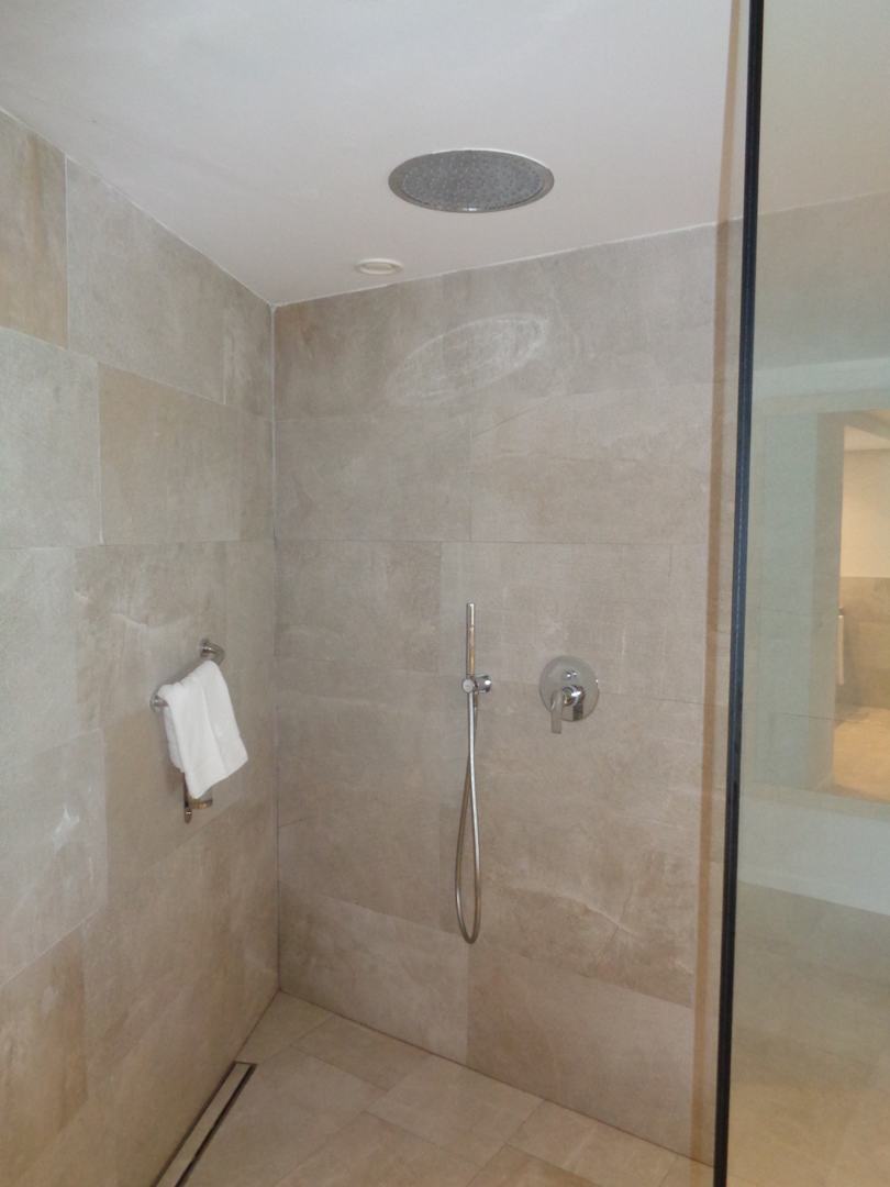 Die große Dusche mit der Regenduschenfunktion.